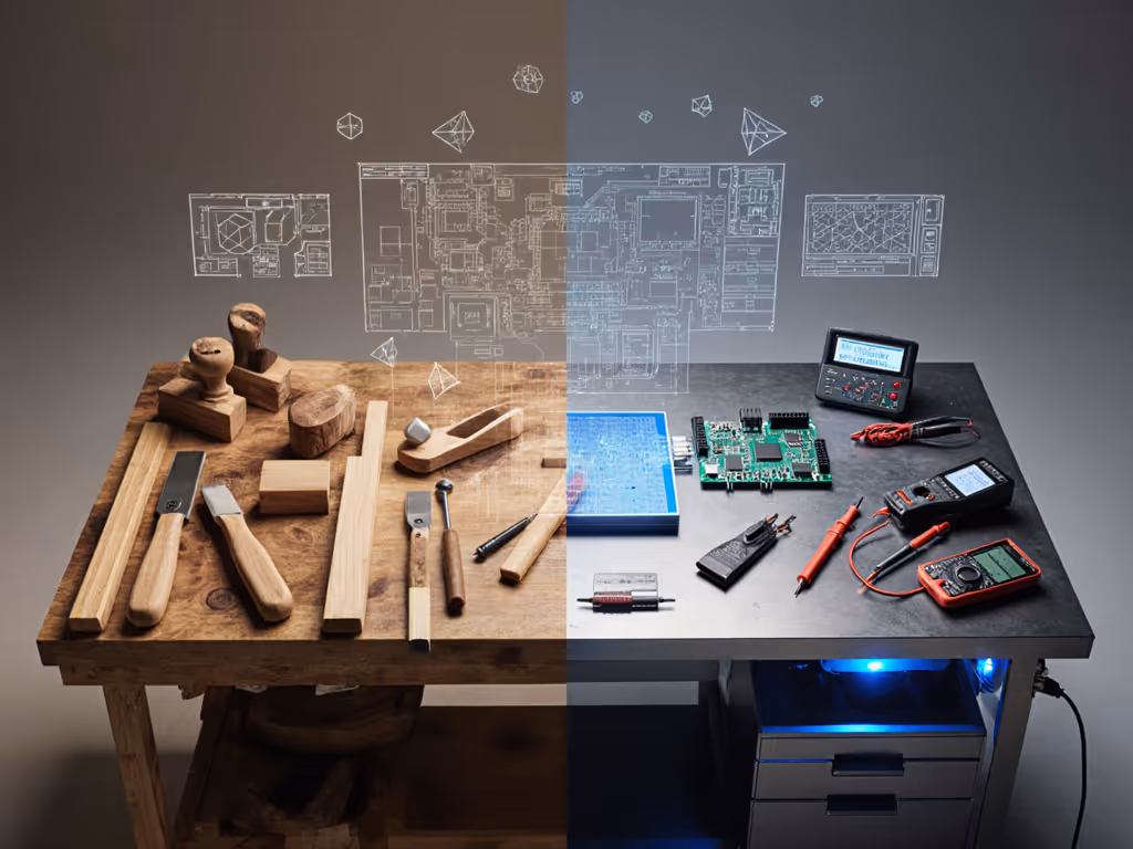 Augmented Carpentry's tablet-based system requires significantly more bench mass than electronics setups. Dial in rigidity with our workbench top thickness guide. Woodworking benches need 30-40% greater mass to maintain AR accuracy during forceful operations like chiseling or planing.