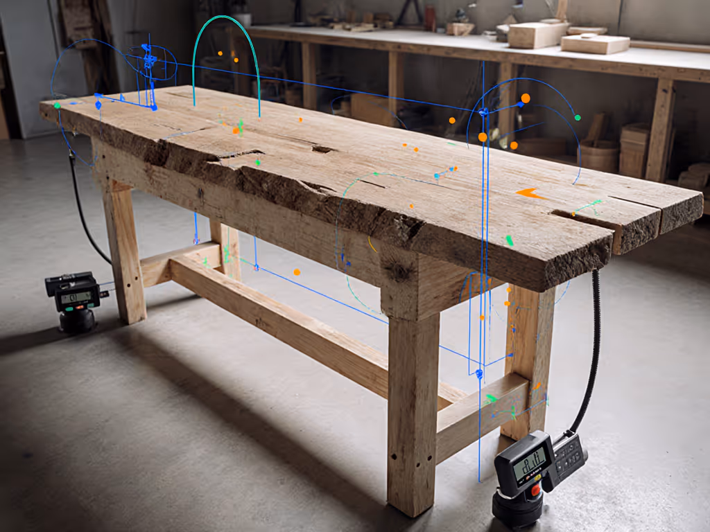 Your bench is a machine, not furniture. During our 2025 community rebuild, two ostensibly identical benches failed sandbag tests (one twisting at 35 kg, the other holding true at 150 kg). The dial indicator told the real story. Workbench design in woodworking must be measured, not admired. Craftsmanship evolution is not about aesthetics; it is quantifiable in millimeters of deflection and kilos of resistance. Control the variables, and the #'s explain themselves.